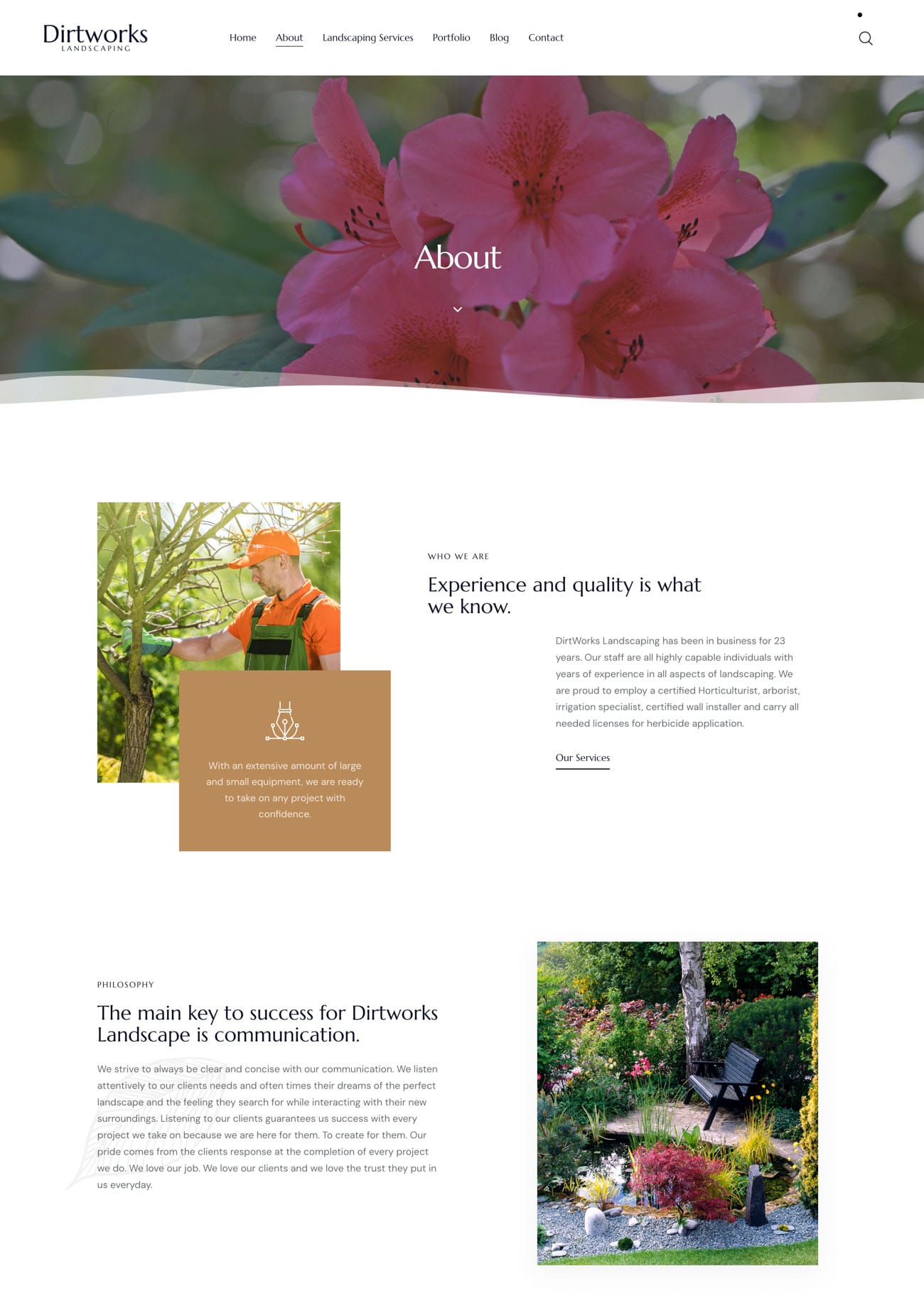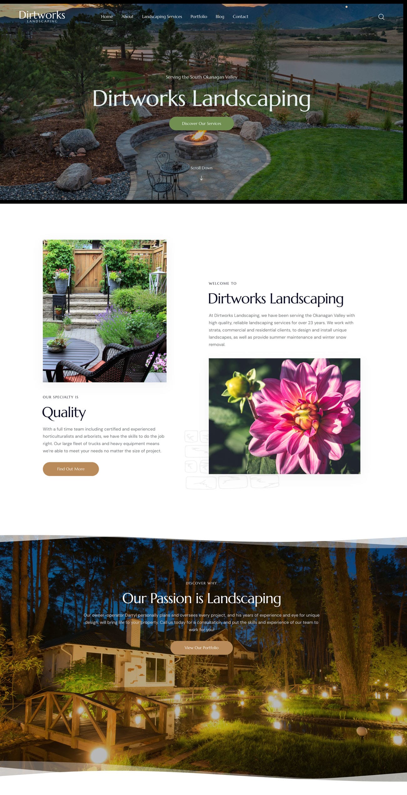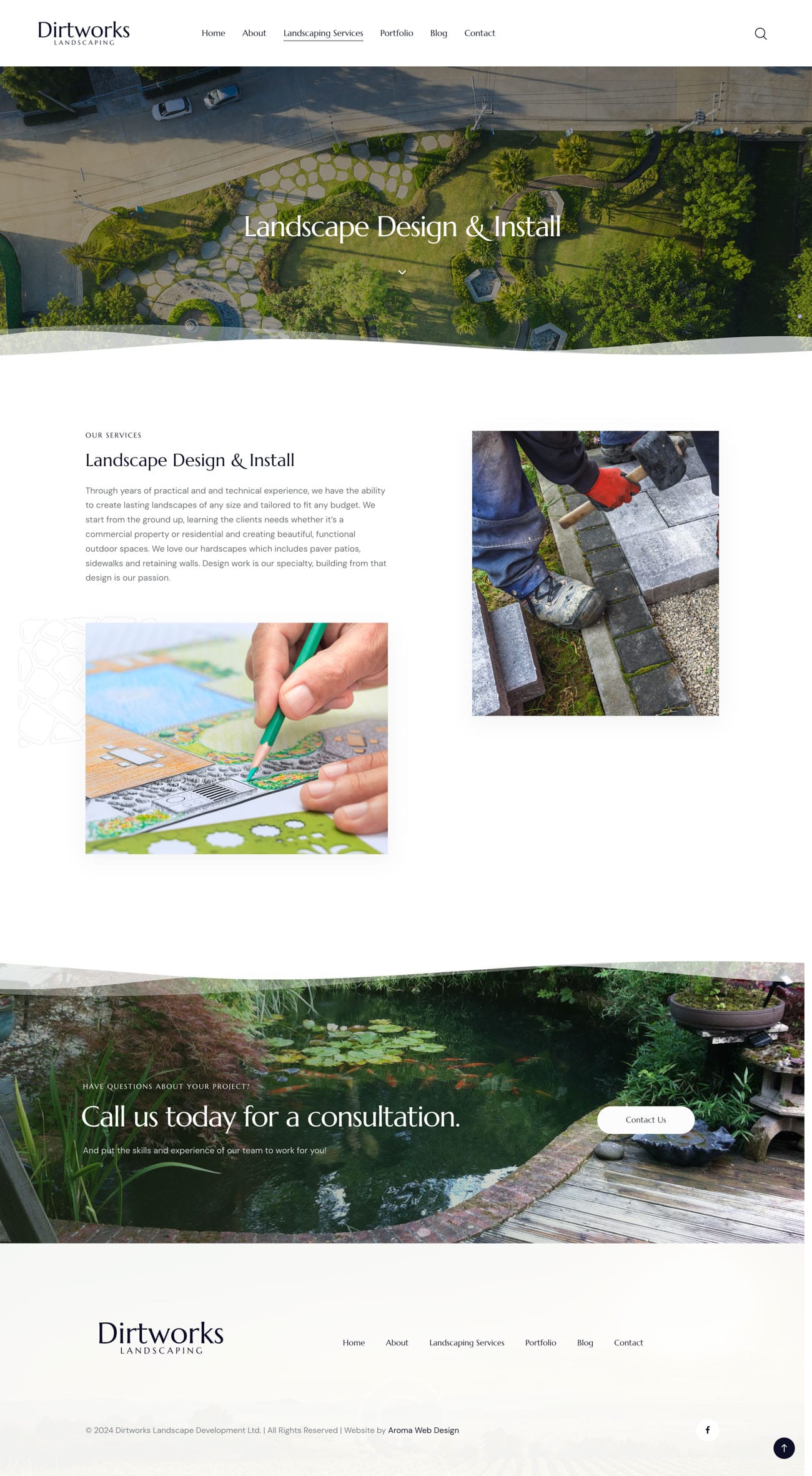 The owner of this landscaping company requested a brand that would embody his philosophy of incorporating organic shapes and natural materials with his landscape design. We created logo options that were both bold, organic and flowing, using fresh green and slate grey. In the web design, we incorporated curves as well as integrating some of the owners’ personal photography after his request.
